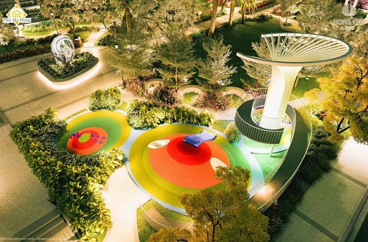 ✔️ Công viên và khu vui chơi trẻ em: Ngoài công viên 18 hecta, dự án còn bố trí thêm các công viên nhỏ phân bố đều trong nội khu, đi kèm với khu vui chơi trẻ em được thiết kế an toàn và sáng tạo. Các khu vực này có sân chơi với cầu trượt, xích đu, trò chơi vận động, giúp trẻ em phát triển thể chất và thỏa sức khám phá trong không gian xanh mát.